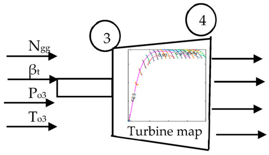 As for the compressor, the turbine map is also very important for the turbine dynamic model. Since the turbine map is not available at the initial stage of GT design, the estimation of the turbine characteristic is necessary. Figure 6 shows the gas generator turbine modeling.