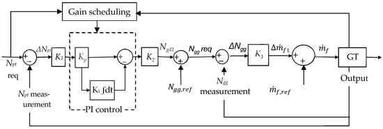 Figure 7 illustrates the gain scheduling technique of a PI controller, with additional gain applied to the GT engine.