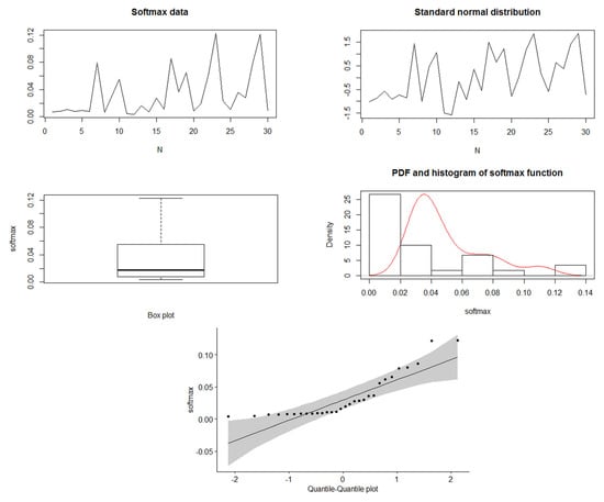 Figure 1. Simulated data of N ( 0 , 1 ) and the softmax data, N = 30 .