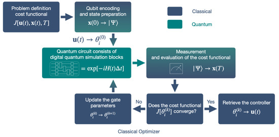 The spirit of the proposal is to replace numerical simulation in classical computers with DQS. In this way, we present the head-to-head comparison between classical methods for a better understanding. We show the schematic diagram of the whole workflow in Figure 1, and address the subroutines that differ from classical approaches in the following subsections.