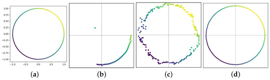 Reconstruction results of the ring graph: (a) original, (b) gPool (error = 1), (c) DiffPool (error = ), and (d) GMAP (error = ).
