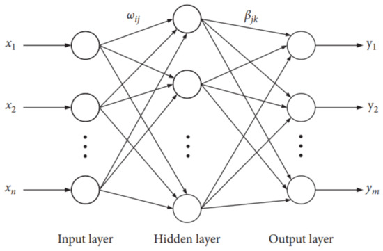 The Extreme Learning Machine (ELM) is a single implicit layer feedforward neural network [32,33]. By setting the number of neurons in the implicit layer, the connection weights between the implicit layer and the output layer are not adjusted iteratively but are determined once by solving a system of equations. From the perspective of learning efficiency, the extreme learning machine has the advantages of few training parameters, fast learning speed, and strong generalization ability. It consists of three parts: the input layer, the implicit layer, and the output layer, as shown in Figure 6. In this paper, we use the ELM classifier to diagnose CHF.