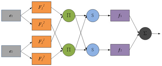 The adaptive network-based fuzzy inference system (ANFIS) is a kind of neural fuzzy inference system proposed by J. S. R. Jang [36]. The ANFIS is widely used in various fields due to its advantages of convenience, high efficiency, and wide adaptability. If the ANFIS has two inputs and and one output y, the rule library has the following rules: