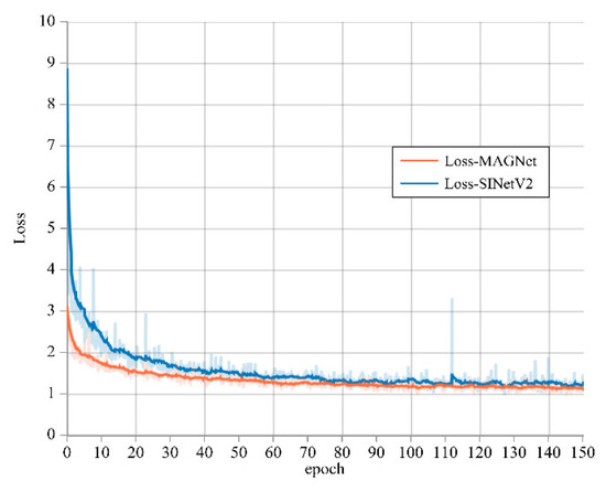 In this experiment, the experimental platform system used was Windows 10, the GPU of the platform was an NVIDIA Quadro GV100, and the video memory was 32 GB. The CPU was an Intel Xeon Silver 4210. The experiment used the PyTorch deep learning development framework, and the computing platform was CUDA11.0. We used the Adam optimizer for network optimization during training, the image input size was set to 352 × 352, and the learning rate was set to 0.0001.