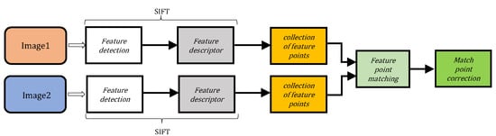 The SIFT detector extracts a number of meaningful descriptive features [33,34,35]. These features are invariant to scaling, rotation, and illumination. Such points are generally presented in high-contrast areas, possibly on object edges. One significant quality of these features is that the relative positions between them should not change from one image to another.