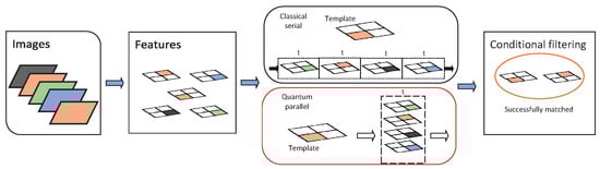 Furthermore, the similarity calculation methods of features are diverse. For example, the correlation function, covariance function, structural similarity index method, etc. [17,18]. Moreover, high accuracy is necessary for image matching, and thus the amount of calculation is huge, so it is difficult to meet the requirements of real-time operation, and the matching rate will increase in areas with poor information frequency. Fortunately, advances in quantum information science and machine learning have led to the natural emergence of quantum machine learning, a field that bridges the two, aiming to revolutionize information technology [19,20,21]. The core of its interest lies in either taking advantage of quantum mechanics to achieve machine learning that surpasses the classical pendant in terms of computational complexity or to entirely be able to apply such techniques on quantum data. An important application of machine learning is pattern recognition in big data analysis [22].