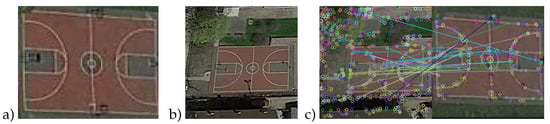 For exhibiting the effectiveness of the hybrid quantum image matching algorithm, we implemented the experiments based on an open NWPU-RESISC45 dataset, a benchmark for remote sensing image scene recognition created by Northwestern Polytechnical University, and another open handwritten character dataset, Mnist. We used the SIFT feature points of these datasets in experiments, and applied classical cosine similarity and the quantum swap test for calculation. An example of image matching is shown in Figure 8. Figure 8a represents the template image; Figure 8b, the references to be matched; and Figure 8c, the result of the feature matching.