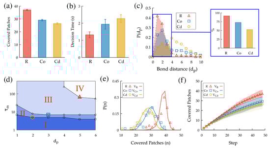 Next, we determined the values of and that provided the best fit to the distribution of performances obtained from the experiments (see Figure 5e). These were (i) , , (ii) , , and (iii) , , for the rectangular (R), circular-ordered (Co), and circular disordered (Cd) levels, respectively.