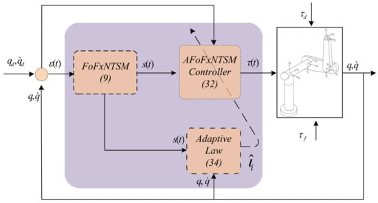 For the purpose of controlling a robotic manipulator in the presence of known bounded uncertainties and external disturbances, the FoFxNTSM control law can be designed as follows