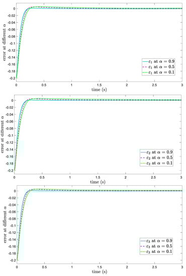 As seen in Figure 2, setting is a simple way to achieve the best results. On the other hand, at and , the desired trajectories are not achieved in terms of tracking errors.