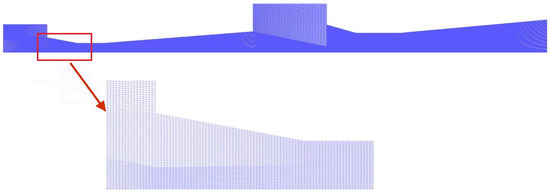 The flow inside the TSE is calculated by using governing equations [33,34], and Gambit 2.4 and Ansys 19.0 [35] are used in this simulation. Grids with 103,000 quadrilateral elements are created as shown in Figure 4.