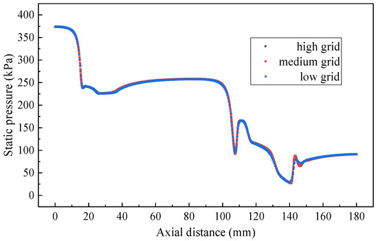 Three levels of grids (71,000, 103,000 and 138,000) are used to validate the grid independence as illustrated in Figure 5. Since the three grid levels are quite close with each other, the medium one is finally used in the following simulation.