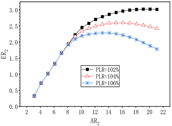 The variation of ER2 with AR2 under different PLR (PNTD2 = 4.7 mm).