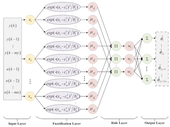 An FNN [30] is a form of hybrid intelligence algorithm; it is a multi-layer forward network that takes the complementarity of neural networks and fuzzy systems into account. In the structure of FNN, the input and output nodes are used to represent the I/O signals of the fuzzy system, and the hidden layer nodes are used to represent the membership function and fuzzy rules. The parallel processing capability greatly improves the inference ability of the fuzzy system. In addition, the FNN has adaptive learning and nonlinear representation capabilities [36]. Therefore, FNNs are utilized to estimate PG values in FFMFAC.