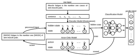 BERT*-ACMM is our proposed model, among which ACMM (Actor-Critic Mask Model) is a model for confrontation with the BERT model and extensions of BERT model. All the parameters of the above BERT model use the huggingface’s bert-base-uncased version (https://huggingface.co/models, accessed on 13 March 2020).
