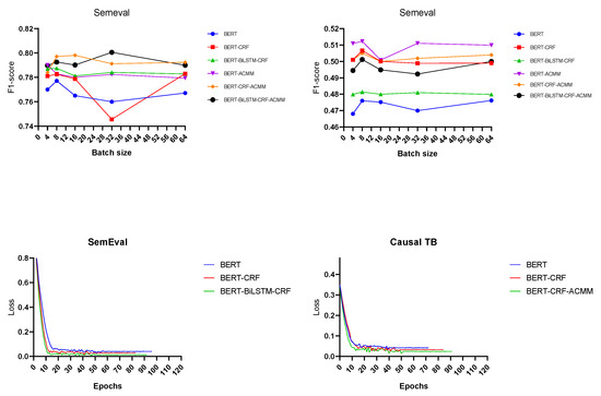 We adopt mini-bach mechanism to train our model. As seen in the two pictures above, in Figure 4, we have conducted many experiments by setting the batch size to , and, finally, we have chosen a better batch size of 8. As for the learning rate, we found that it is a better choice to choose different learning rates for different parameters through experiments. We set the learning rate of the parameters to , and the learning rate of the parameters of to . As for the learning rates of the models BiLSTM [34] and TARGER [35], we refer to the corresponding values in the paper, which are 0.1 and 0.01, respectively.