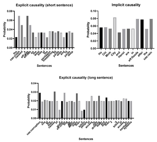 Examples of three masked sentences. Among them, “cas” represents the cause entity, and “eff” represents the result entity. There are two sentences with explicit causality, and one sentence with implicit causality.