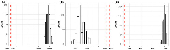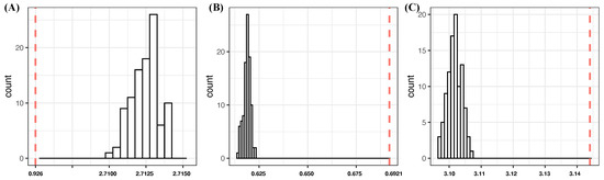 - In the three-feature setting, the top six feature triplets are coupling any pairs of . They achieve SCEs that satisfy criterion [C2: irreplaceable], but they do not fulfill the criterion [C1: confirmable]. The CEs of these triplets, which range between and , are all larger than the mean () of the distribution of the CEs of . Therefore, there are no confirmed candidates for order-3 major factors.