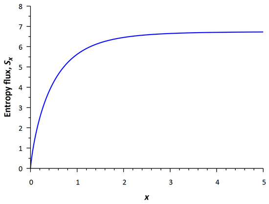 Figure 6 shows the profile of the increasing entropy flux Sx(x) calculated from Equation (8). That is consistent with Schrödinger’s ideas that life is powered by negative entropy (negentropy). Indeed, the H-function (H = −S), i.e., negentropy decreases. This flux is the entropy pump mentioned above. Therefore, the difference of output and input entropy fluxes reads
