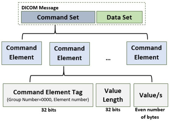 Each DICOM message consists of two parts: command set, constructed from command elements, and data set. Figure 3 reports the general structure. In more detail, each command element consists of: