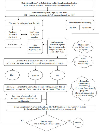 Fifth, a methodology for road safety management in large-scale systems using the entropy method was developed. The algorithm of the management of the regional road safety in Russia concerning the level of its entropic orderliness is presented in Section 4.
