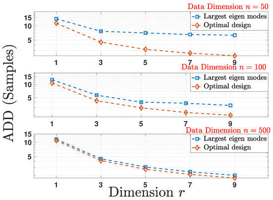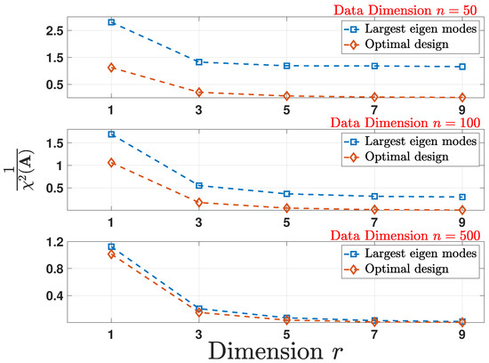Likewise, finding the optimal design for that optimizes when can be found by replacing by in (23). In either case, the optimal design of is constructed by choosing r eigenvectors of as the rows of . The results and observations are formalized in Section 4.6.