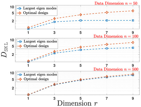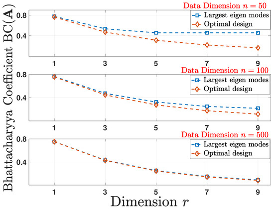 The optimal design of often does not involve being aligned with the largest eigenvalues of the covariance matrixΣ, which is in contrast to some of the key approaches to linear dimensionality reduction that generally perform linear mapping along the eigenvectors associated with the largest eigenvalues of the covariance matrix. When the eigenvalues ofΣare all smaller than 1, in particular, will be designed by choosing eigenvectors associated with the smallest eigenvalues ofΣin order to preserve largest separability.