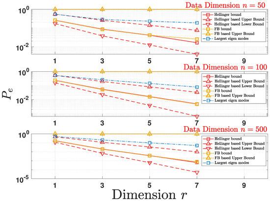 (2) Matching Bounds up to a Constant: The second set of bounds that we used are provided in Reference [41]. These bounds relate the total variation between two Gaussian models to the Frobenius norm (FB) of a matrix related to their covariance matrices. Specifically, these FB-based bounds on the total variation are given by