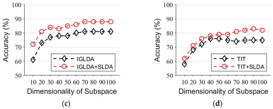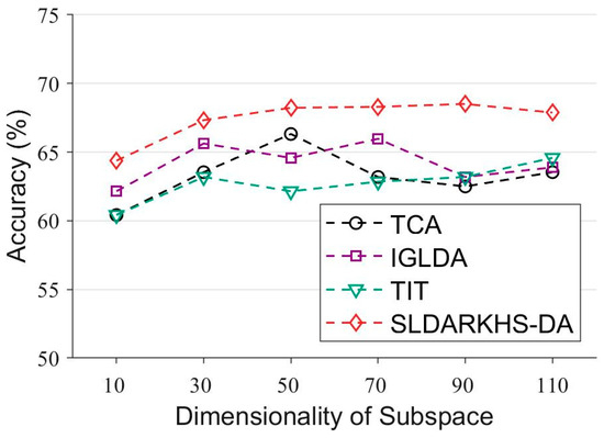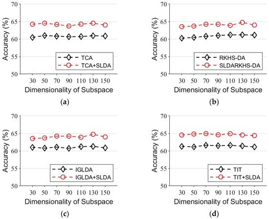 The most commonly used nonparametric distance estimation method for measuring the distance of statistical feature distribution between the source and target domain data is the maximum mean difference (MMD), which was proposed by Gretton et al. [22] and Smola et al. [23]. Based on MMD, Pan et al. [24] proposed transfer component analysis (TCA), which maps data from the source and target domains to a high-dimensional RKHS. However, MMD uses the first-order moments of the origin of two random variables to measure the distance between two probability distributions, which does not accurately describe the local differences between the two distributions. Therefore, it is common practice to add regularization terms to compensate for the shortcomings of MMD. For example, semi-supervised transfer component analysis (SSTCA) [24] adds a streamwise regularization term to TCA, which can reduce the distance in data distributions between domains and maximize label dependence in a latent space. Jiang et al. [25] proposed to integrate the global and local metrics for domain adaptive learning (IGLDA). Based on TCA, IGLDA considers both the local data information and overall information to make the source and target domain data as close as possible while preserving the geometric properties of the source domain data. Li et al. [26] proposed a domain adaptation algorithm framework that maps data from two domains to RKHS with feature selection and a maximum regularization term for the variance of the target domain data in the subspace. Our experiments show that their algorithm improves the classification accuracy to some extent, but ignores the optimization problem of the source domain data and its labels. In domain adaptation, source domain data with label is an important information source. How to use label information is always the focus of various domain adaptation algorithms. Lei et al. [27] applied the dictionary learning to the source domain while we borrowed the idea of LDA.