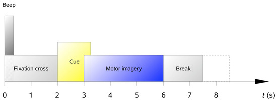 Motor imagery signals are body parts that imagine movement in the absence of actual movement. Different MI tasks lead to oscillatory activity observed in different areas of the sensorimotor cortex of the brain [4]. Various MI-based BCI applications have been used as rehabilitation for wheelchair and prosthetic control in disabled patients [5,6,7,8], and for recreation in healthy individuals [9,10].