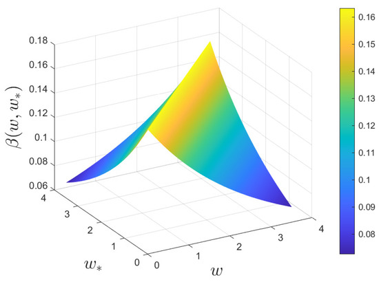 where , and . According to the above contact rate, agents with similar wealth are more likely to interact. The extrapolation of heterogeneous contact rates have been deeply studied in mathematical epidemiology; see [1,43,44,45,46,47] and the references therein.