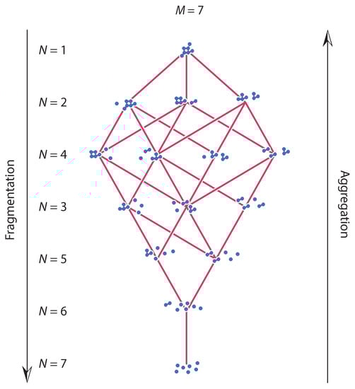 - Matsoukas, T. Statistical Mechanics of Discrete Multicomponent Fragmentation. Condens. Matter 2020, 5, 64. [Google Scholar] [CrossRef]