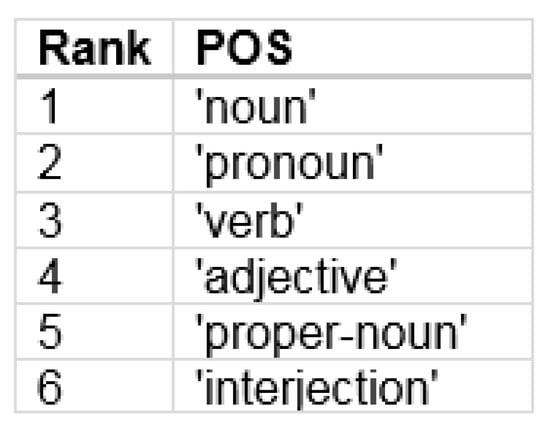 - Petrov, S.; Das, D.; McDonald, R. A Universal Part-of-Speech Tagset. In Proceedings of the Eighth International Conference on Language Resources and Evaluation (LREC’12), Istanbul, Turkey, 23–25 May 2012; European Language Resources Association (ELRA): Istanbul, Turkey, 2012; pp. 2089–2096. [Google Scholar]