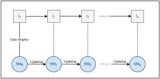 As mentioned in the introduction, our goal is to find a stable matching for each instance. This study attempts to find stable matching for each instance by updating the previous instance’s stable matching. The steps of finding stable matching using the previous matching update mechanism are depicted in Figure 3.
