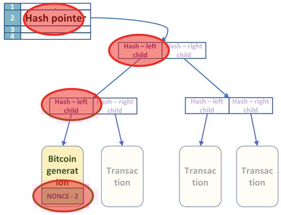 To see how the algorithm is applied, let us consider a small, degenerate example. We will consider the smallest possible Merkle tree and the smallest nonces; see