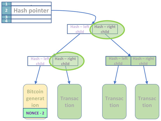 Figure 8. Let the Merkle tree have two leaves only and let both nonces be of size 1; one qubit. In this case, the nonce search space is of size