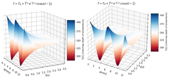 In Figure 7, the estimation of temperature versus x, position in the probe and time t, is shown. This is the graphical representation of the complete solution for the temperature distribution in a two-dimensional case.