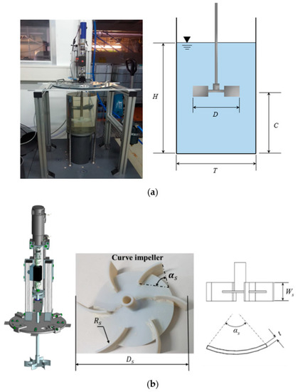- Rewatkar, V.B.; Rao, K.S.M.S.R.; Joshi, J.B. Power consumption in mechanically agitated contactors using pitched bladed turbine impellers. Chem. Eng. Communion 1990, 88, 69–90. [Google Scholar] [CrossRef]