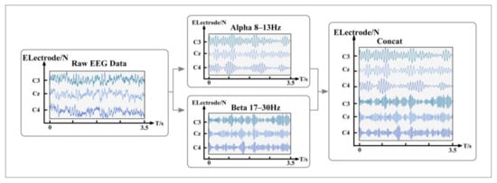 - Ramoser, H.; Muller-Gerking, J.; Pfurtscheller, G. Optimal spatial filtering of single trial EEG during imagined hand movement. IEEE Trans. Rehabil. Eng. 2000, 8, 441–446. [Google Scholar] [CrossRef] [Green Version]