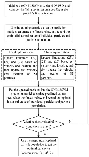 Supposing that there is a sample set within the initial sliding-time window; is defined as the prediction-error threshold of the sample and refers to the relative-decrement threshold of the objective function. During the adjustment of the window length, the latest samples are continuously added in order to dynamically update the model, and the predicted value of the next sample is offered based on the updated model. The computation may terminate in order to output the length of the sliding-time window if the following two conditions are met: (1) the time-series-prediction error of the training set is less than ; (2) the relative decrement of the objective function is less than the threshold for continuous times.