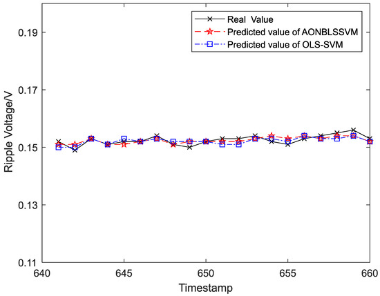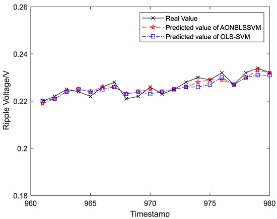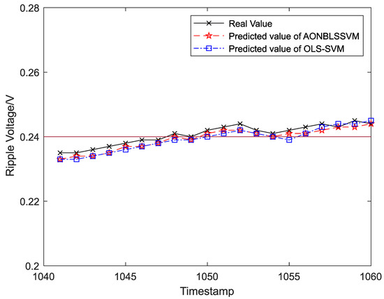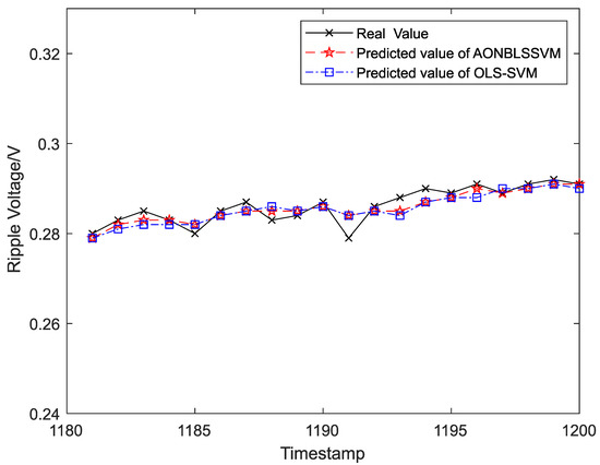 The least-squares support-vector machine (LSSVM), a variant of the standard SVM, was developed by Suykens and Vandewalle [42,43,44]. The LSSVM introduces the least-squares linear system as a loss function, and has better anti-noise ability and faster operation speed than the standard SVM. In the present work, the LSSVM is improved in order to perform the regression prediction of the fault-characteristic parameter (output ripple voltage) of DC–DC converter circuit.
