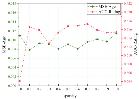For different tasks, different subnet sparsity can be selected according to the experimental results so that the model can trade off multiple tasks and optimize the performance as much as possible. According to the experimental results on the Movielens dataset and Table 5, the sparsity of the shared pool required by task 1 is very different from that needed by task 2. After analyzing the data samples, we observed that the rating data are closely related to the user’s age, but the user’s age is not associated with the rating. That is why the age subtask needs to cut more parameters. However, according to the the Pearson correlation coefficient, the calculated correlation of the two tasks is very low for only considering the linear correlation of the two tasks, which is insufficient to measure the relationship between variables when a particular progressive relationship exists between tasks. That is why the traditional multi-task model is always harmfully affected by the seesaw phenomenon.