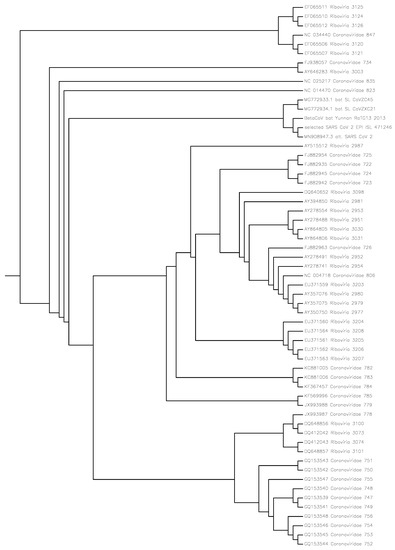4.2. Thirty-Seven Viruses Close to the Selected SARS-CoV-2 Virus