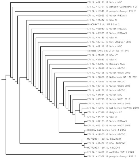 - Paraskevis, D.; Kostaki, E.G.; Magiorkinis, G.; Panayiotakopoulos, G.; Sourvinos, G.; Tsiodras, S. Full-genome evolutionary analysis of the novel corona virus (2019-nCoV) rejects the hypothesis of emergence as a result of a recent recombination event. Infect. Genet. Evol. 2020, 79, 104212. [Google Scholar] [CrossRef] [PubMed]