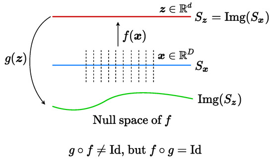 Mathematically, we seek an embedding of the data supported on certain nonlinear submanifolds in the space to feature on a set of (discriminative) linear subspaces in the feature space . Ideally, both f and g should be embeddings [1], when restricted on the support of the data distribution or that of the features. (That is, we hope and are all embeddings for all .) In addition, more ideally, we hope f and g are mutually inverse embeddings: (when restricted on the submanifolds). Nevertheless, if we are only interested in learning the distribution, embeddings of the support would often suffice the purposes (e.g., classification or generative purposes). Notice that the above goals are similar to many VAE+GAN-related methods in the machine-learning literature, such as BiGAN [38] and ALI [39]. We will discuss the differences of our approach from these existing methods in Section 2.3 (as well as providing some experimental comparisons in the Appendix A).