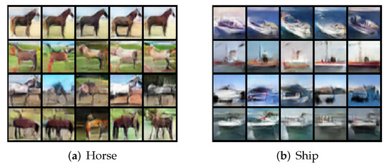 - Salimans, T.; Goodfellow, I.; Zaremba, W.; Cheung, V.; Radford, A.; Chen, X. Improved techniques for training GANs. In Advances in Neural Information Processing Systems; MIT Press: Cambridge, MA, USA, 2016; pp. 2234–2242. [Google Scholar]