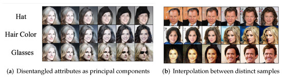- Chen, X.; Duan, Y.; Houthooft, R.; Schulman, J.; Sutskever, I.; Abbeel, P. InfoGAN: Interpretable Representation Learning by Information Maximizing Generative Adversarial Nets. In Advances in Neural Information Processing Systems; MIT Press: Cambridge, MA, USA, 2016; pp. 2172–2180. [Google Scholar]