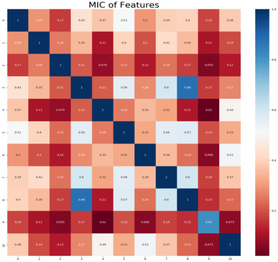 The MIC is a new measure proposed by Reshef et al. [35] to gauge the degree of nonlinear correlations between variables. The MIC-based method uses the maximal normalized mutual information to measure the degree of correlation between any feature and the target category, and applies the information theory and the idea of probability to continued data. In the MIC-based method, the joint probability density is used to measure the correlation between two random feature variables [36], which can measure the linear and nonlinear correlations between random variables, and hence can mine the internal correlations between variables. Besides, the MIC can label not only the discreteness of the eigenvalues, but the continuity of the values.