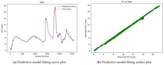 As Table 4 shows, GRU achieves higher accuracy than LSTM, with the R2 increased from 0.954 to 0.996, and the RMSE reduced by 0.343. That is, the GRU model has improved the dissolved oxygen prediction accuracy by 72.8% on average, and reduced the MAPE from 1.495% to 0.712%. This means the GRU model has a higher prediction accuracy and better fitting effect than the LSTM model.