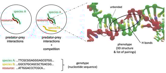 Mambretti, F.; Pedrani, N.; Casiraghi, L.; Paraboschi, E.M.; Bellini, T.; Suweis, S. OxDNA to Study Species Interactions. Entropy 2022, 24, 458. https://doi.org/10.3390/e24040458